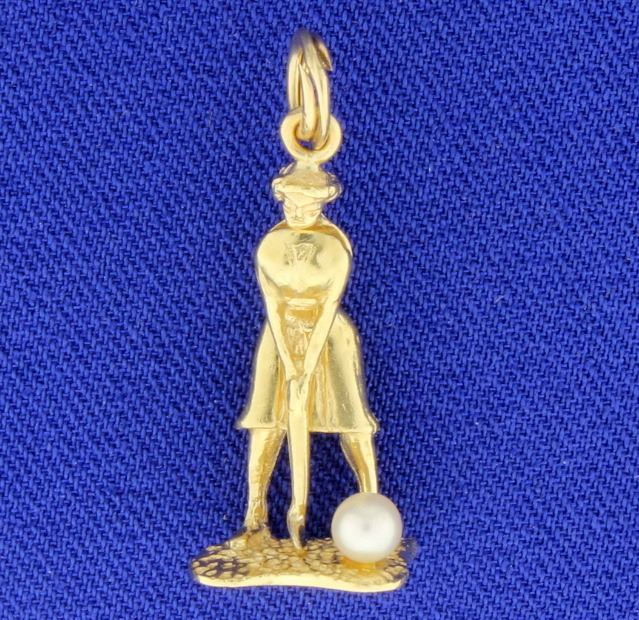 14k pearl golf pendant. 3.5mm pearl. 1.25 inches long. 14k yellow gold. 3.2g.