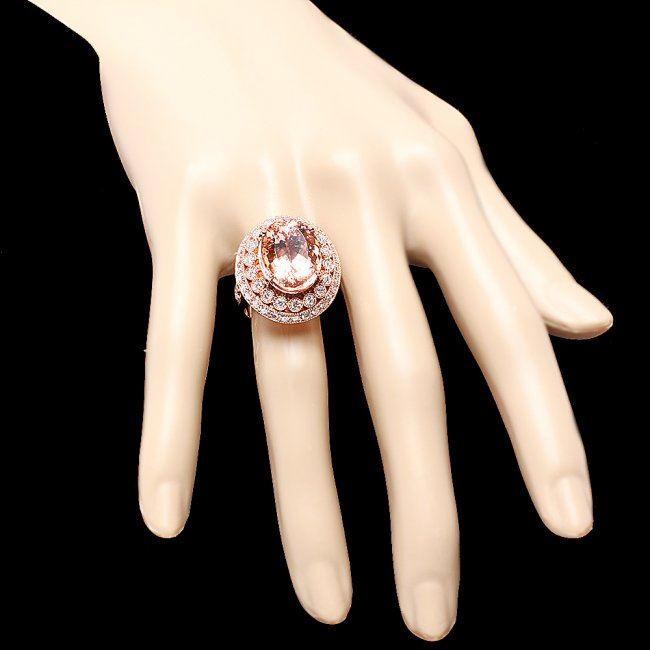 Retail: $16,500.00 ****** 14k Rose 10.00ct Morganite 1.60ct Diamond Ring ****** Metal: 14k Solid Rose Gold / Size: 6.5 / Total Item Weight: 12.0 grams / Country Made: United States / / Main Stone: Morganite / Color: Brown / Carat Total Weight: 10.00 / Treatment: None / Clarity: Type 2 / Cut: Very Good / / Secondary Stone: Diamond / Carat Total Weight: 1.60 / Treatment: None / Color Grade: H - I / Clarity: SI1 - SI2 / Cut: Very Good /