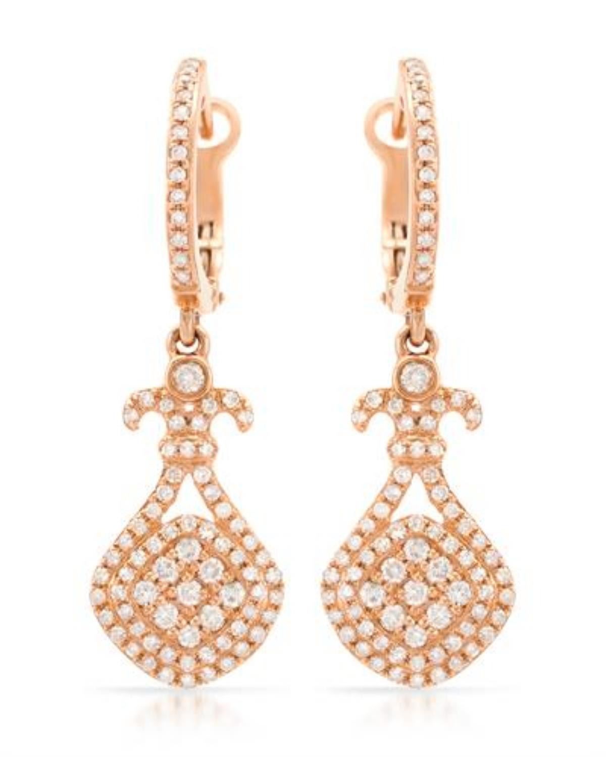 One Pair 14k Rose Gold 0.75CTW Diamond Earring, (I1/I) - Product Specification: Stone: Diamond Stone 2: Diamond Stone 3 Custom: Women Stone 4 Custom: I1 / I Stone Clarity: I1 Stone Color: I Stone Weight: 0.75 Weight: 1 Width: 10.0mm