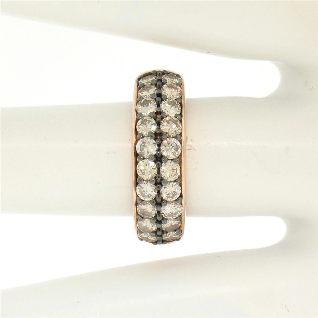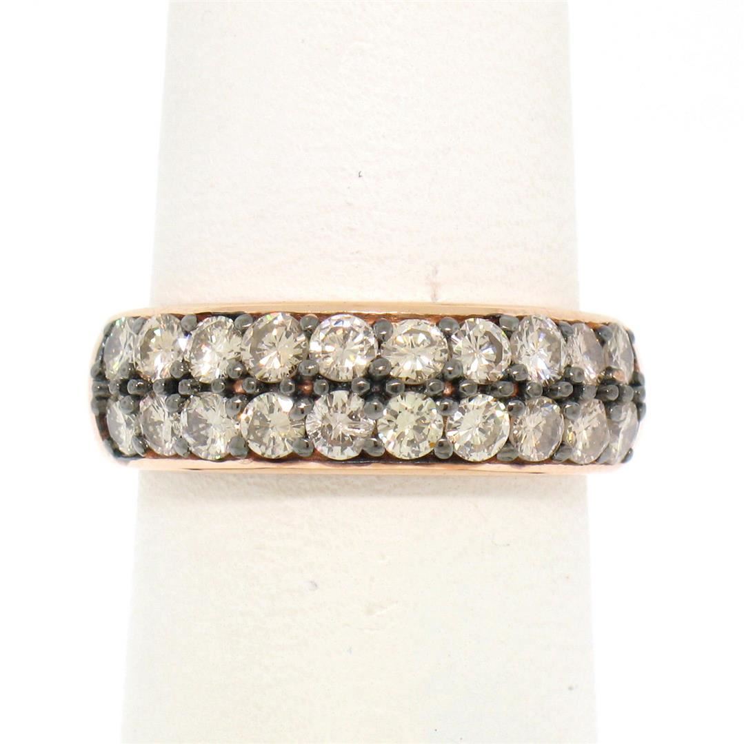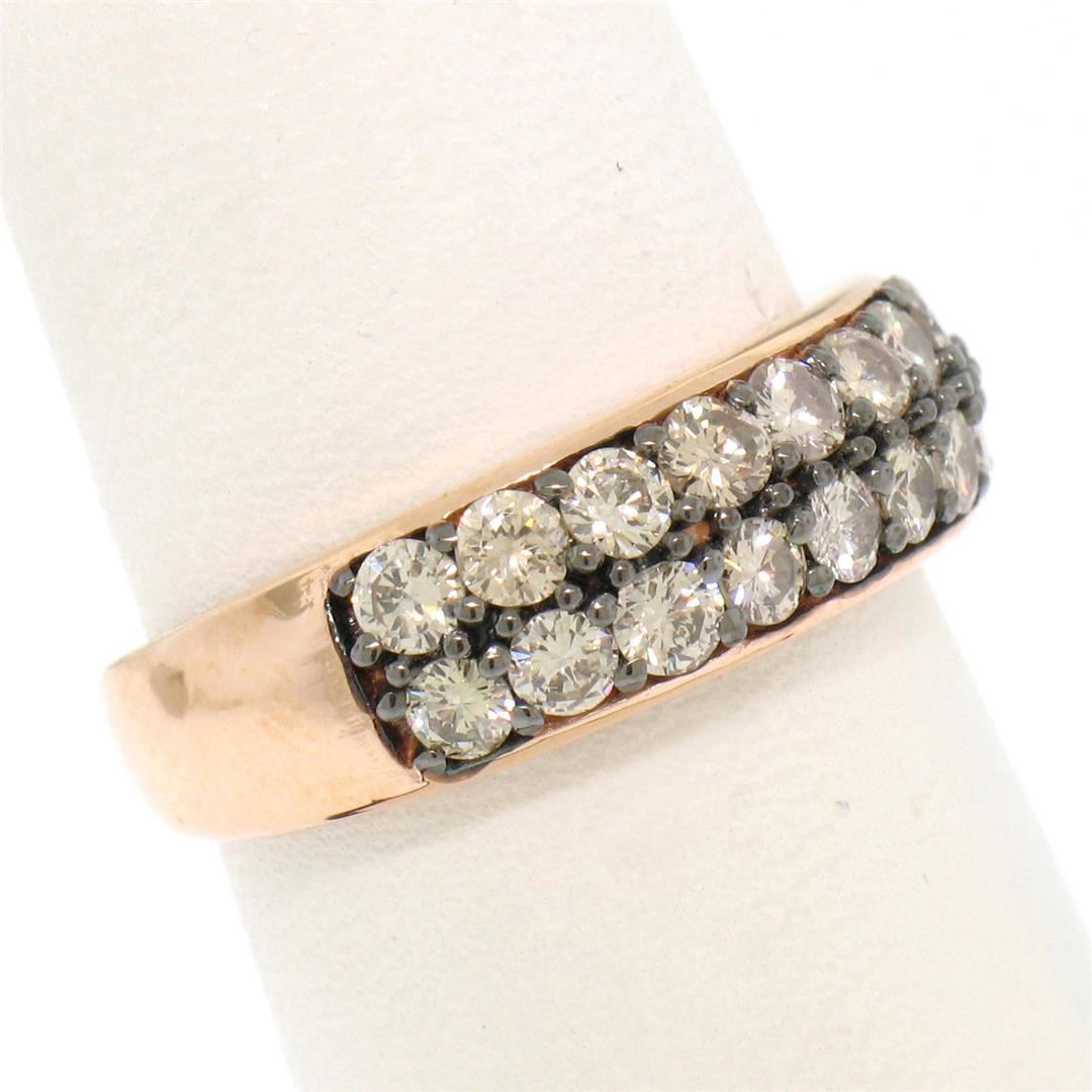 One NEW Custom Made 14k Rose Gold 1.10ctw Dual Row Round Champagne Diamond Band Ring. Item Details: Material: 14k Solid Rose Gold w/ Black Rhodium Prongs, Weight: 4.7 Grams, Stone(s): (20) Natural Genuine Diamonds - Round Brilliant Cut - Prong Set - Fancy Light Champagne Color - VS1/VS2 Clarity, Total Carat Weight: 1.10, Ring Size: 5.5 (We can custom size this ring.), Ring Width: 6.04mm, Ring Height: 3.18mm rise off the finger, Condition: New w/o Tag