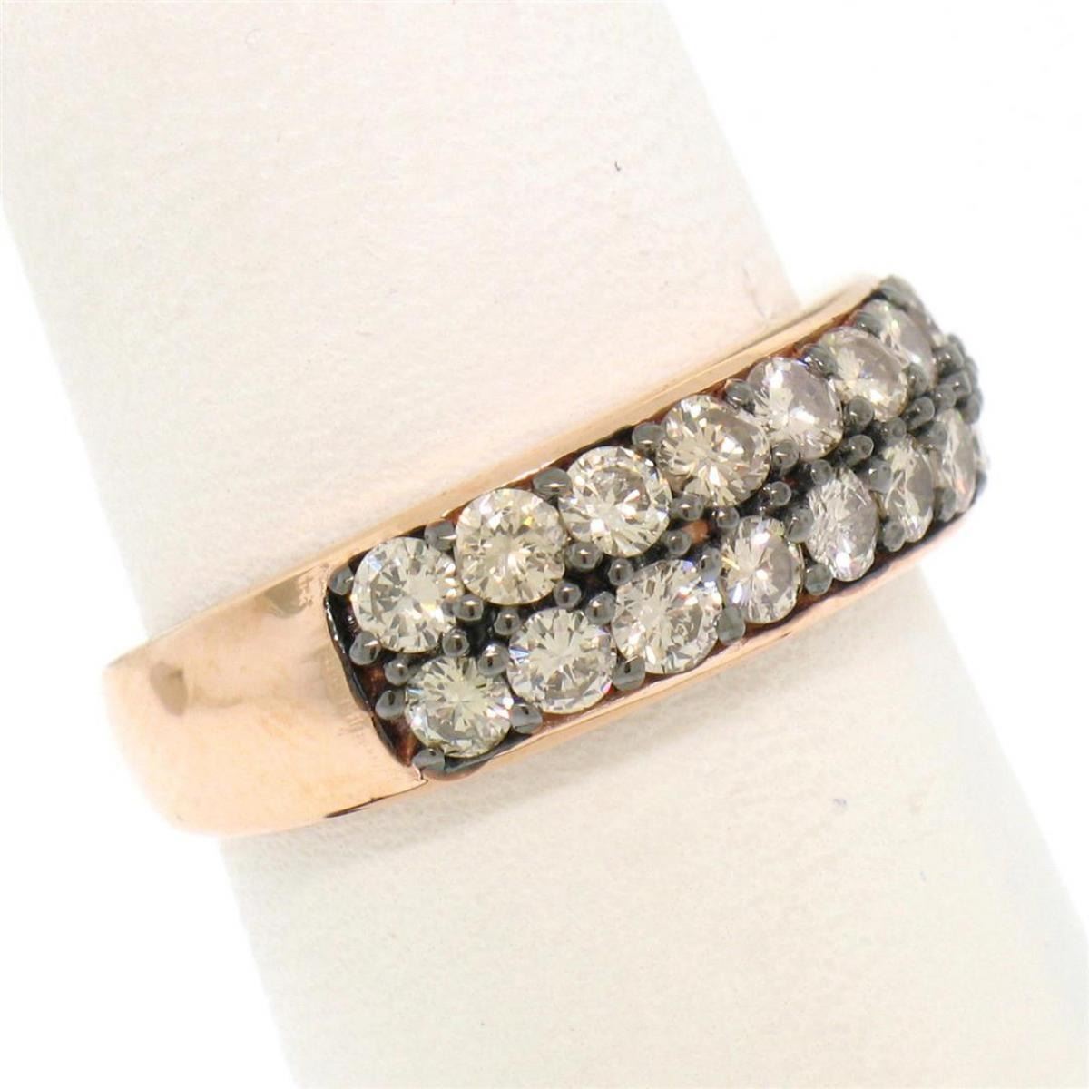 One NEW Custom Made 14k Rose Gold 1.10ctw Dual Row Round Champagne Diamond Band Ring. Item Details: Material:  14k Solid Rose Gold w/ Black Rhodium Prongs, Weight:  4.7 Grams, Stone(s):  (20) Natural Genuine Diamonds - Round Brilliant Cut - Prong Set - Fancy Light Champagne Color - VS1/VS2 Clarity, Total Carat Weight:  1.10, Ring Size:  5.5 (We can custom size this ring.), Ring Width:  6.04mm, Ring Height:  3.18mm rise off the finger, Condition:  New w/o Tag