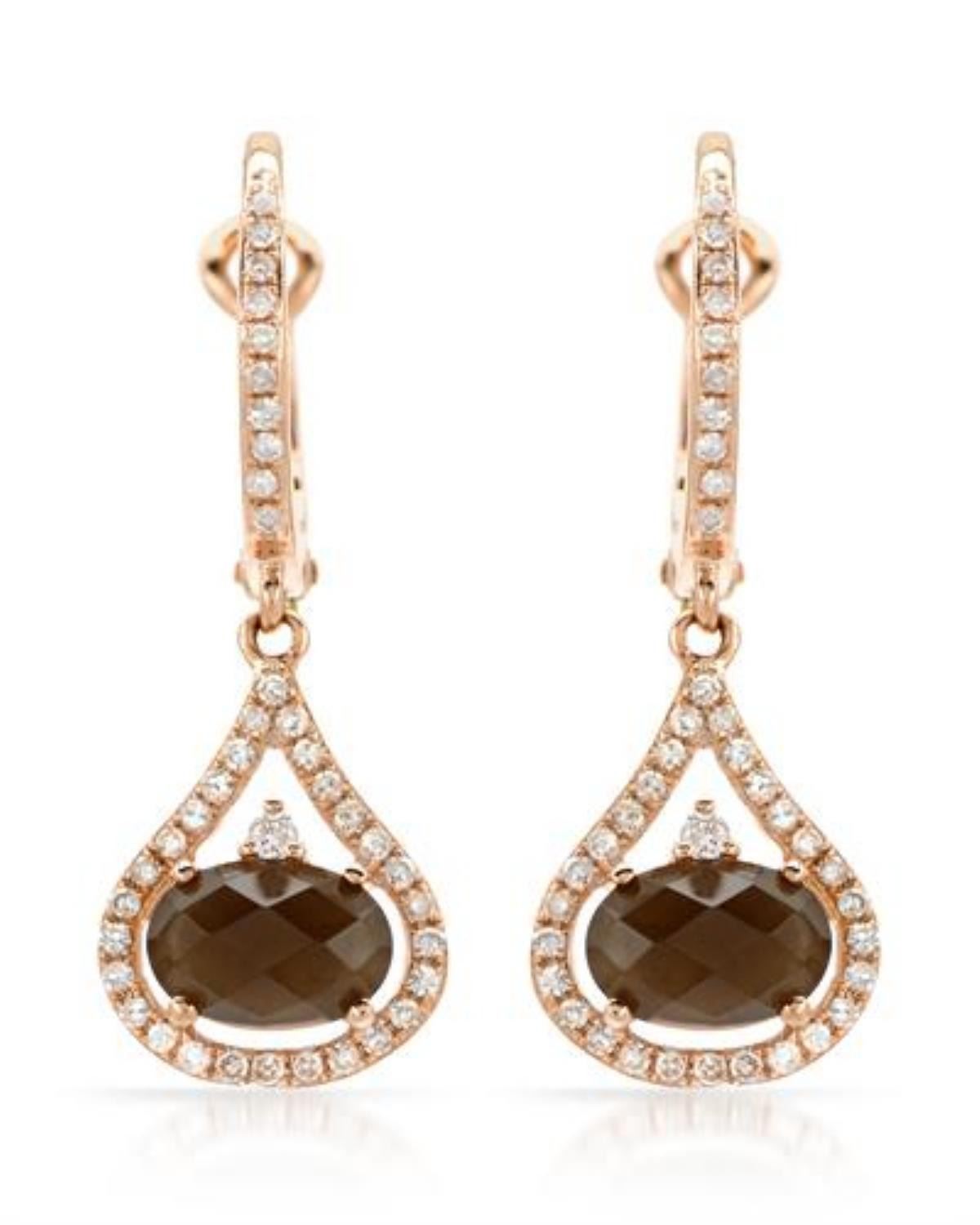 14k Rose Gold 1.94CTW Diamond and Smokey Quartz Earrings, (I1/I)