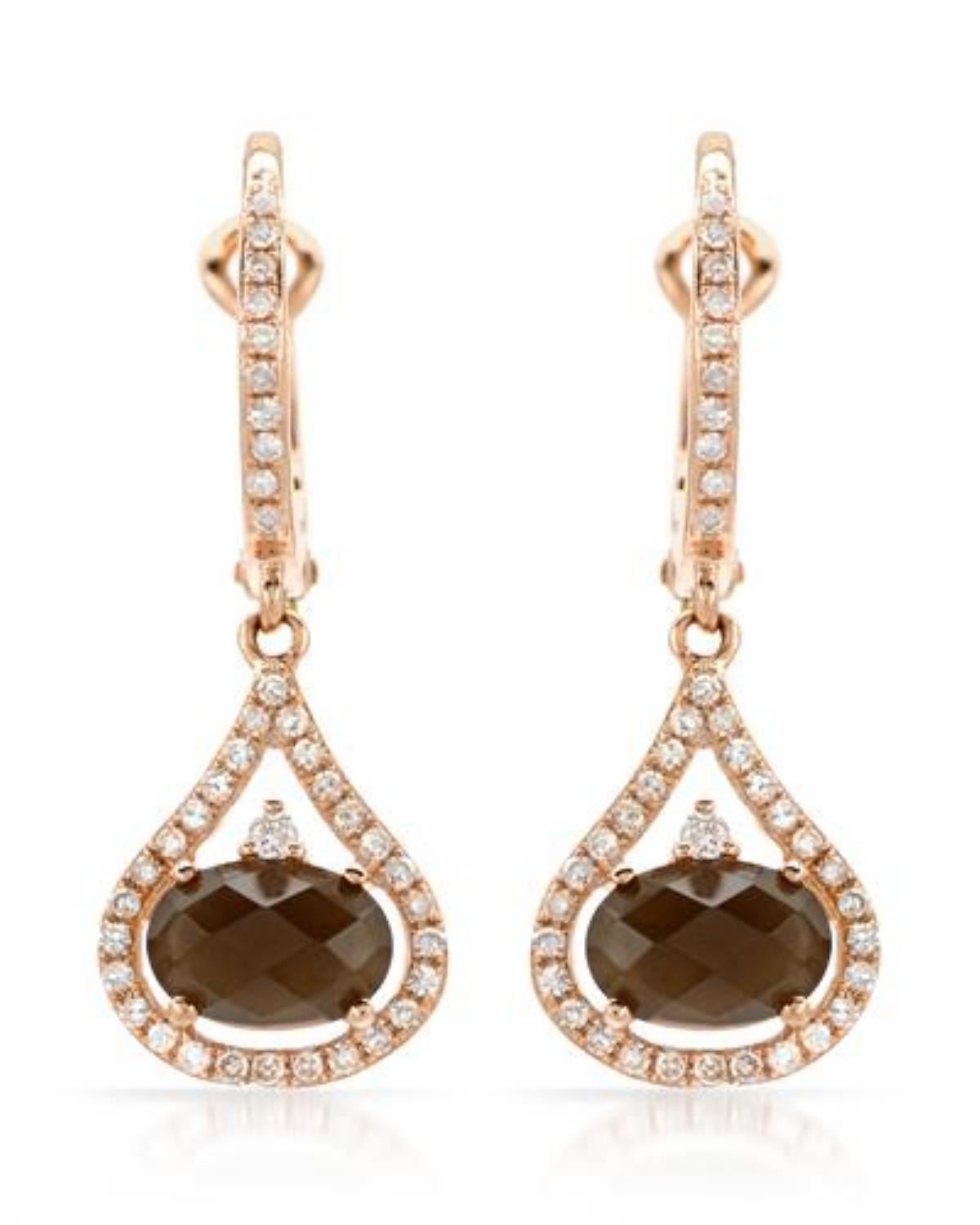 14k Rose Gold 1.94CTW Diamond and Smokey Quartz Earrings, (I1/I)