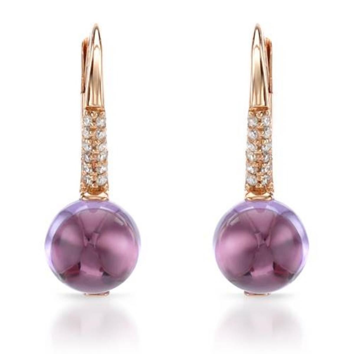 One 14k Rose Gold 3.37CTW Amethys and Diamond Earring - Product Specification: Stone: Amethys Stone 3 Custom: Women Stone Weight: 3.26 Weight: 1 Width: 6.0mm