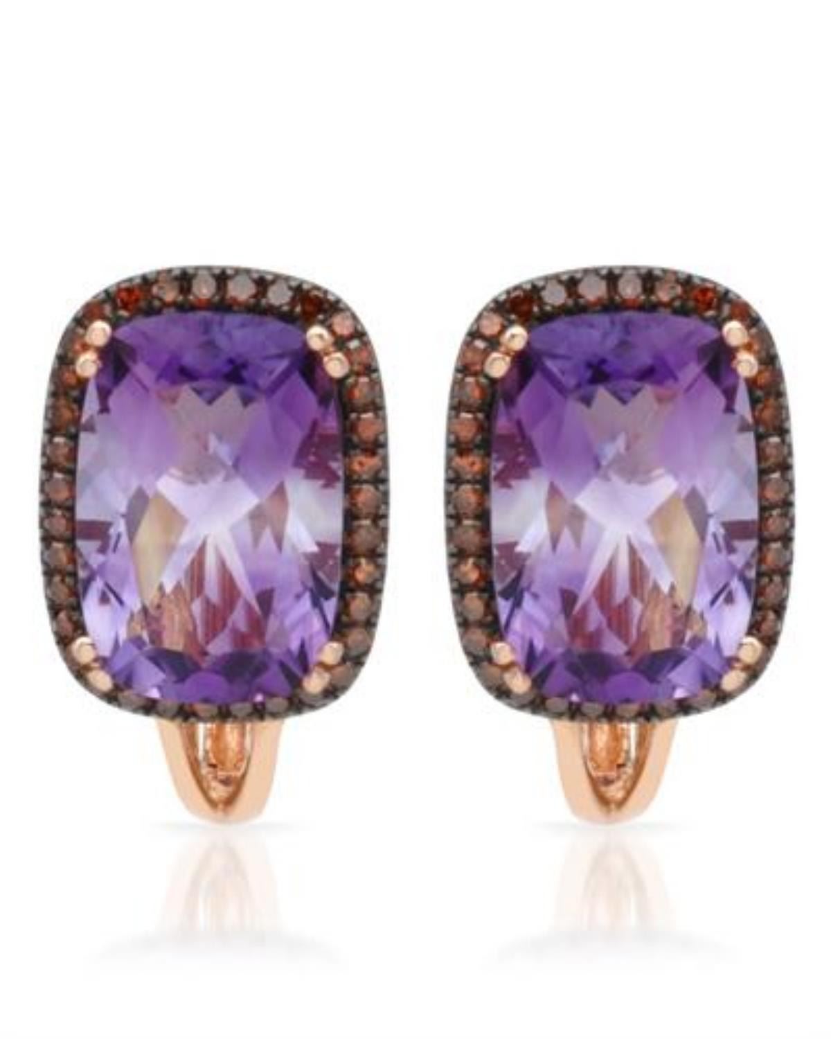 One Pair 14k Rose Gold 7.10 ctw Amethys and Diamond Earring - Product Specification: Stone: Amethys Stone 2: Diamond Stone 2 Weight: 0.32 Stone 3 Custom: Women Stone Weight: 6.78 Weight: 1 Width: 10.0mm