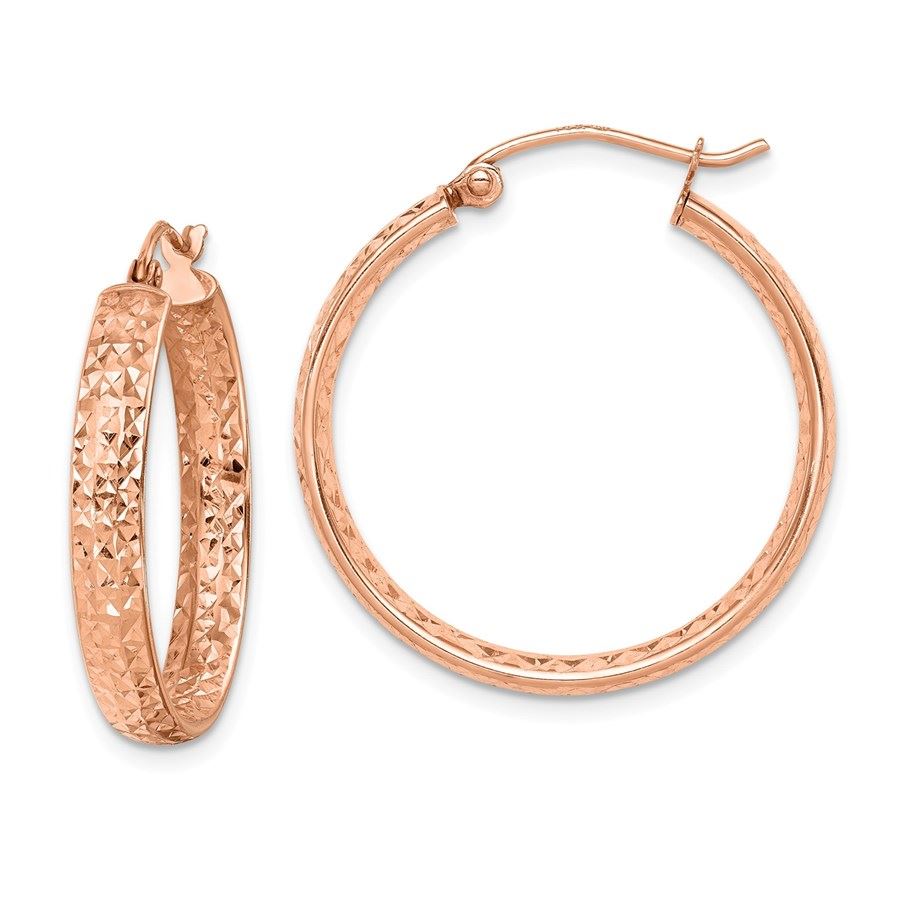14k Rose Gold Diamond-cut In/Out Hoop Earrings - 25 mm
