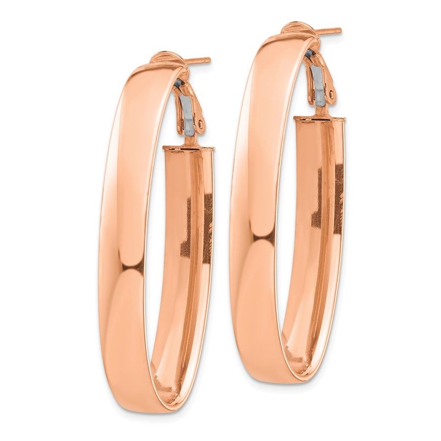 14k Rose Gold Omega Back Oval Hoop Earrings - 7x20 mm