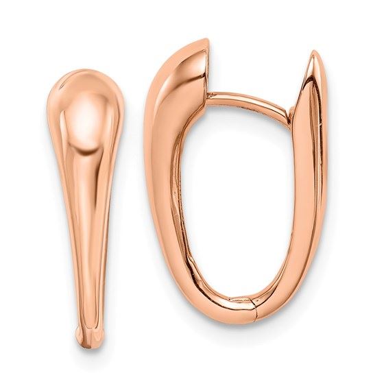 One piece 14k Rose Gold Polished Hinged Hoop Earrings