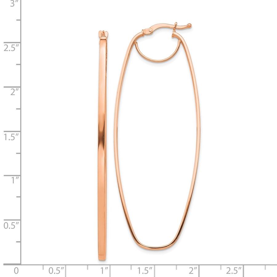 14k Rose Gold Polished Oval Dangle Hoop Earrings - 3 mm