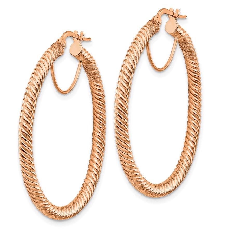 14k Rose Gold Twisted Round Hoop Earrings - 30 mm