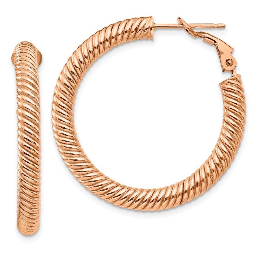14k Rose Gold Twisted Round Omega Back Hoop Earrings - 25 mm