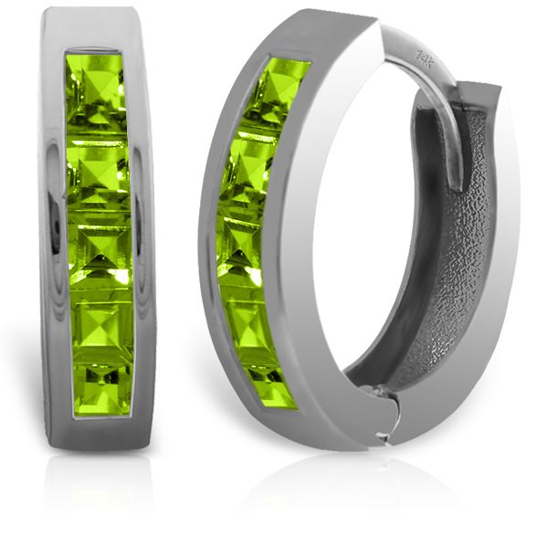 14K. SOLID GOLD HOOP HUGGIE EARRING WITH PERIDOTS