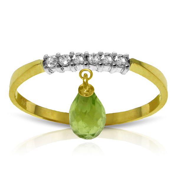 14K. GOLD RING W/ NATURAL DIAMONDS & DANGLING PERIDOT