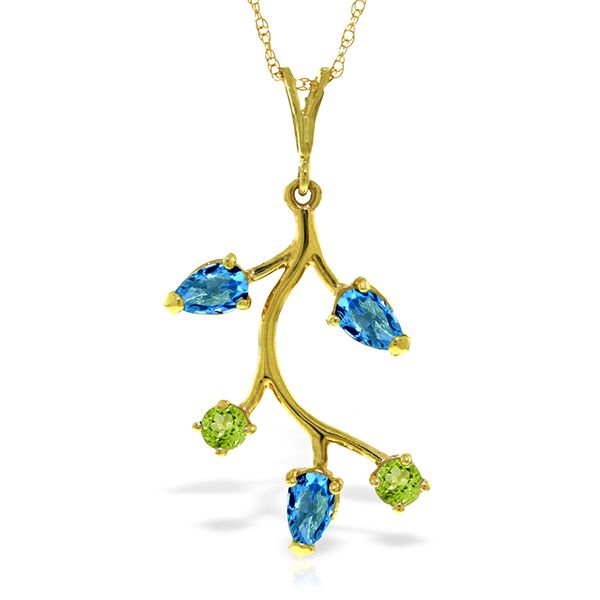 14K. SOLID GOLD NECKLACE WITH BLUE TOPAZ & PERIDOTS
