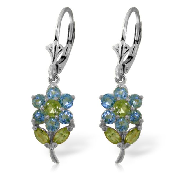 14K. GOLD FLOWERS EARRING WITH BLUE TOPAZ & PERIDOTS