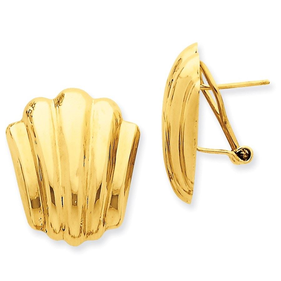 14k Solid Gold Polished Fancy Omega Back Post Earrings (22 mm)