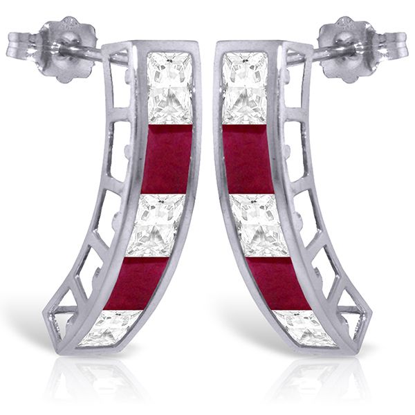 14K. GOLD EARRINGS WITH NATURAL WHITE TOPAZ & RUBIES