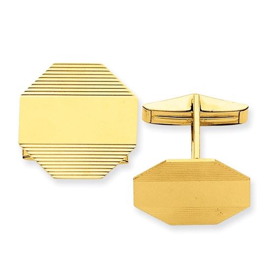 One piece 14k Solid Gold Textured Octagonal Cuff Links