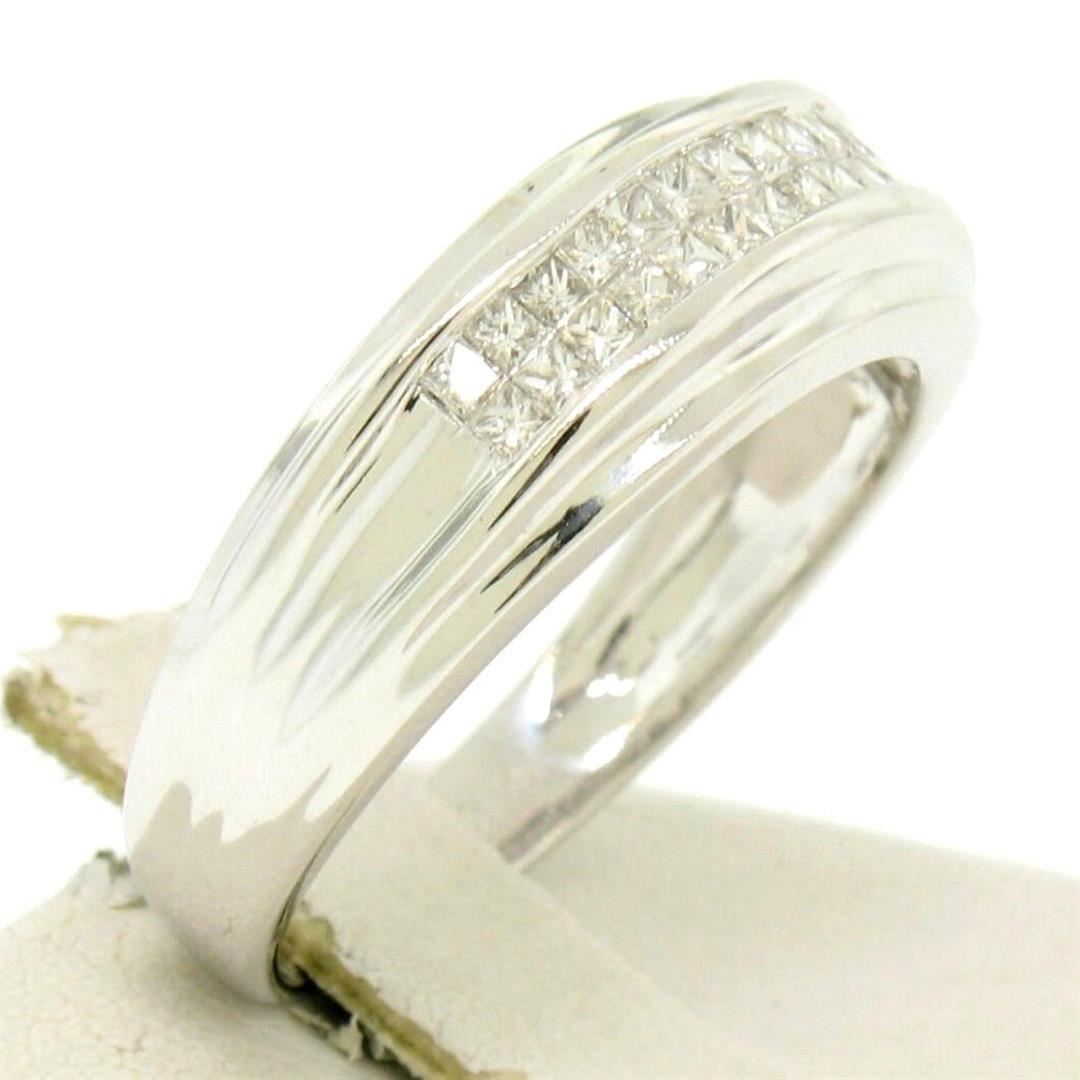 An estate solid 14k white gold band ring, with 28 princess cut natural diamonds (H/I - VS2; 0.56ctw). The ring is size 6.5, weighs a total of 5.0 grams, and measures 6.5mm wide.