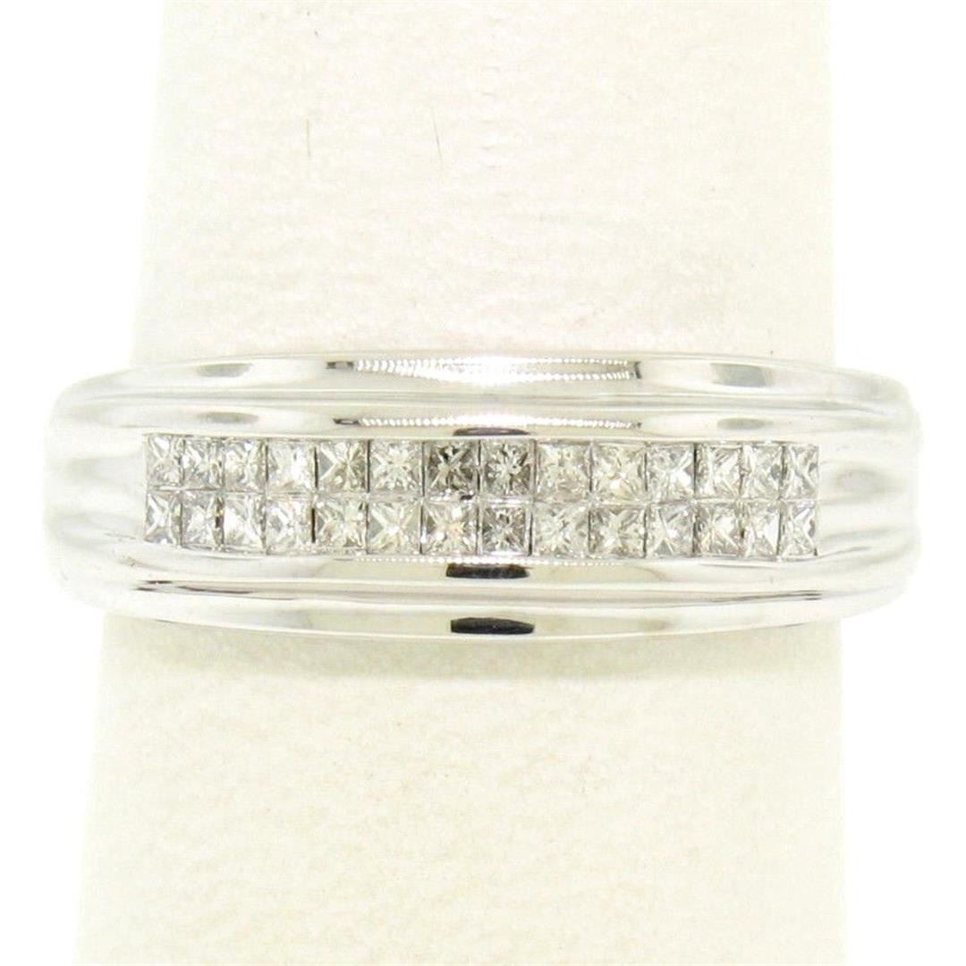 An estate solid 14k white gold band ring, with 28 princess cut natural diamonds (H/I - VS2; 0.56ctw). The ring is size 6.5, weighs a total of 5.0 grams, and measures 6.5mm wide.