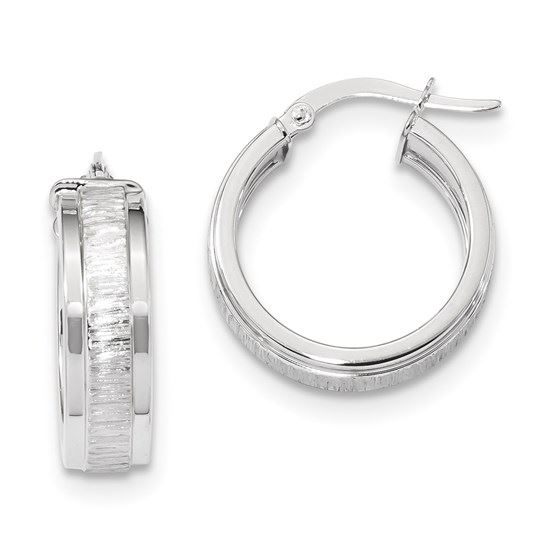 One piece 14k Solid White Gold Polished & Satin Hoop Earrings (21.91 mm)
