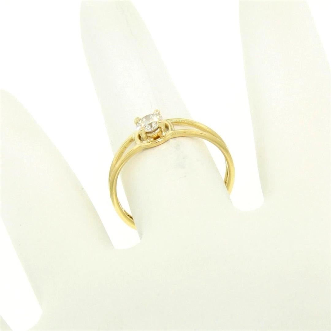 An estate solid 14k yellow gold solitaire open band ring, with 1 round brilliant cut natural diamond (H- VS1; 0.21ct). The ring is size 5.0, weighs a total of 1.7 grams, and measures 5.6mm wide.