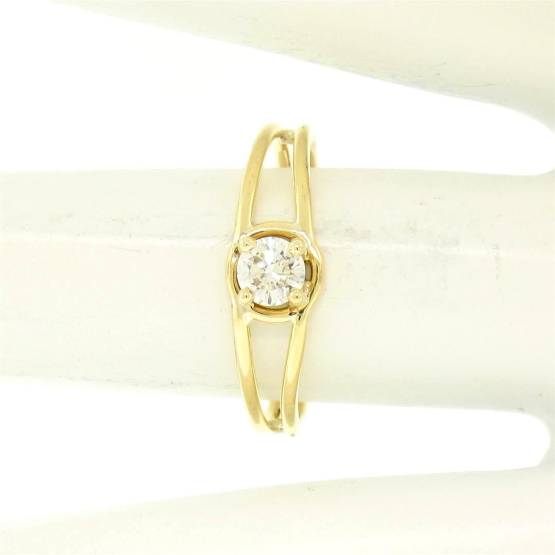 14k Solid Yellow Gold 0.21 ctw Round Brilliant Diamond Solitaire Open Band Ring