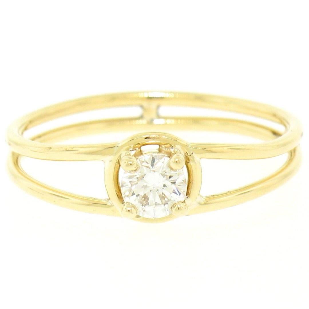 14k Solid Yellow Gold 0.21 ctw Round Brilliant Diamond Solitaire Open Band Ring