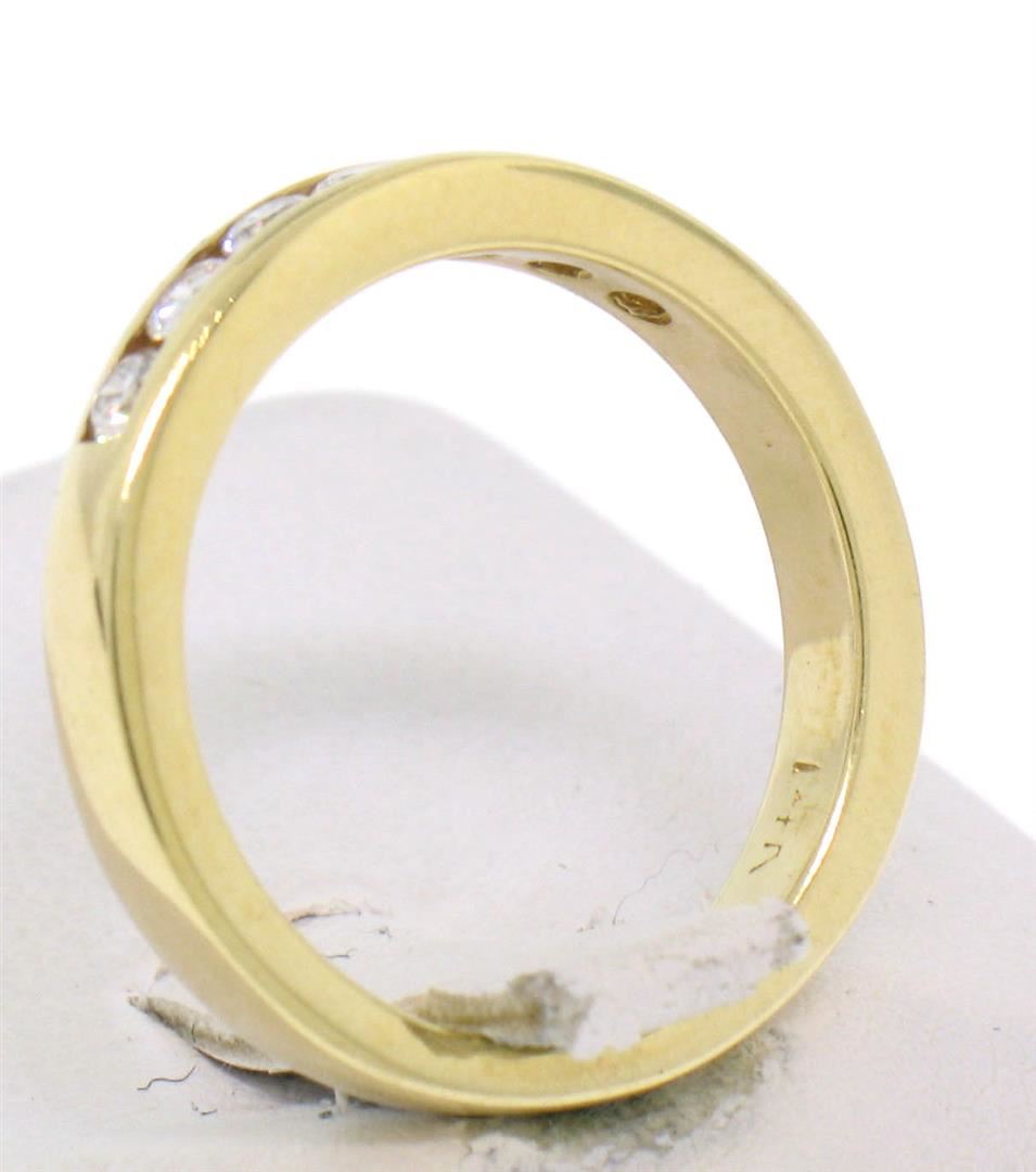 One 14K Solid Yellow Gold .28 CTW Channel Set 7 Round Diamond Band Ring*. Item Details: Material: 14K Solid Yellow Gold, Weight: 3.90 Grams , Stone: (7) Natural Genuine Round Brilliant White Diamond- 0.28 CTW - Clarity:VS1 - Color: G, Dimensions/Size: Ring Size: 5. We can size this ring to fit. Top of the Ring Measures 16.08 mm Side to Side X 3.33 mm Top to Bottom , Condition: New