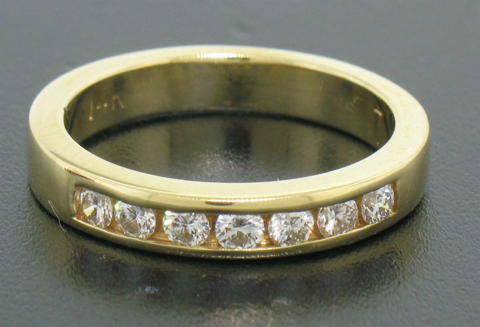 One 14K Solid Yellow Gold .28 CTW Channel Set 7 Round Diamond Band Ring*. Item Details: Material: 14K Solid Yellow Gold, Weight: 3.90 Grams , Stone: (7) Natural Genuine Round Brilliant White Diamond- 0.28 CTW - Clarity:VS1 - Color: G, Dimensions/Size: Ring Size: 5. We can size this ring to fit. Top of the Ring Measures 16.08 mm Side to Side X 3.33 mm Top to Bottom , Condition: New