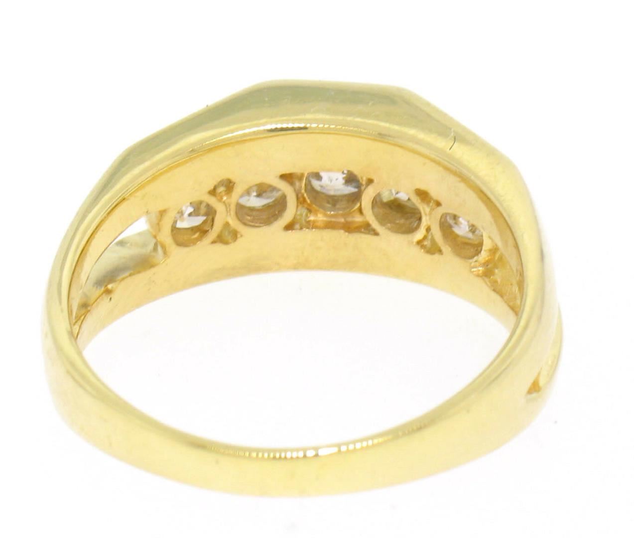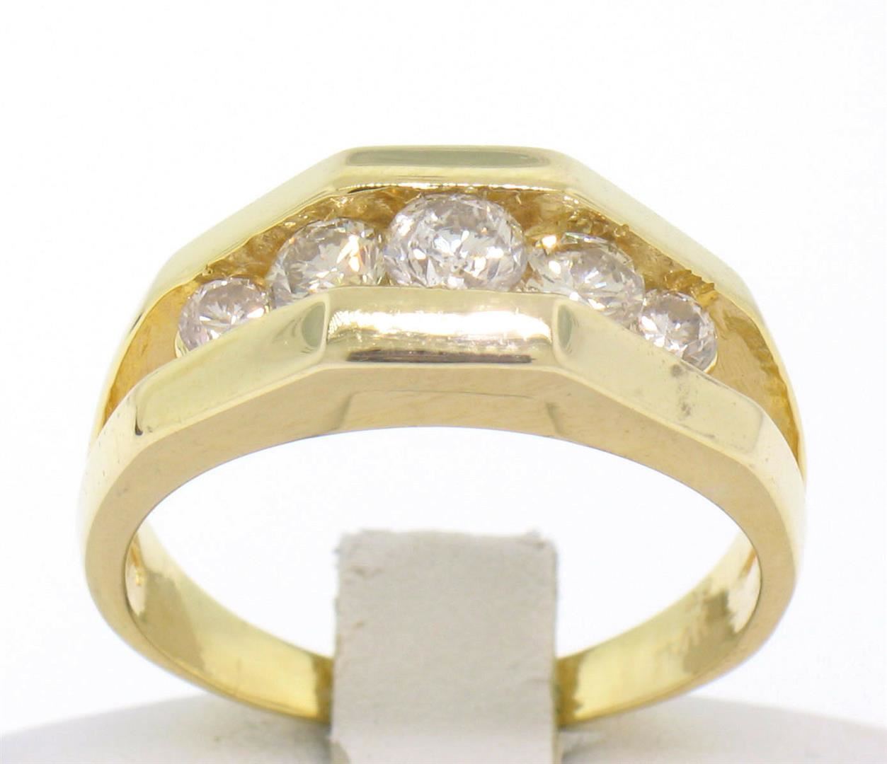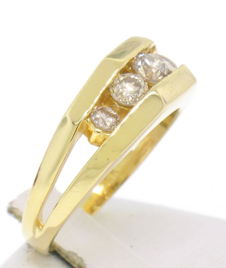 One 14k Yellow Gold 0.60ctw Channel Set Graduated Round Diamond Geometric Band Ring. Item Details: Material: 14K Solid Yellow Gold, Weight: 5.70 Grams , Stone: (5) Natural Genuine Diamonds - Round Brilliant Cut - Channel Set - G/H Color - SI1 Clarity - 0.60ctw (approx.), Size: 7.0 , Width: 7.75mm, Condition: Like New