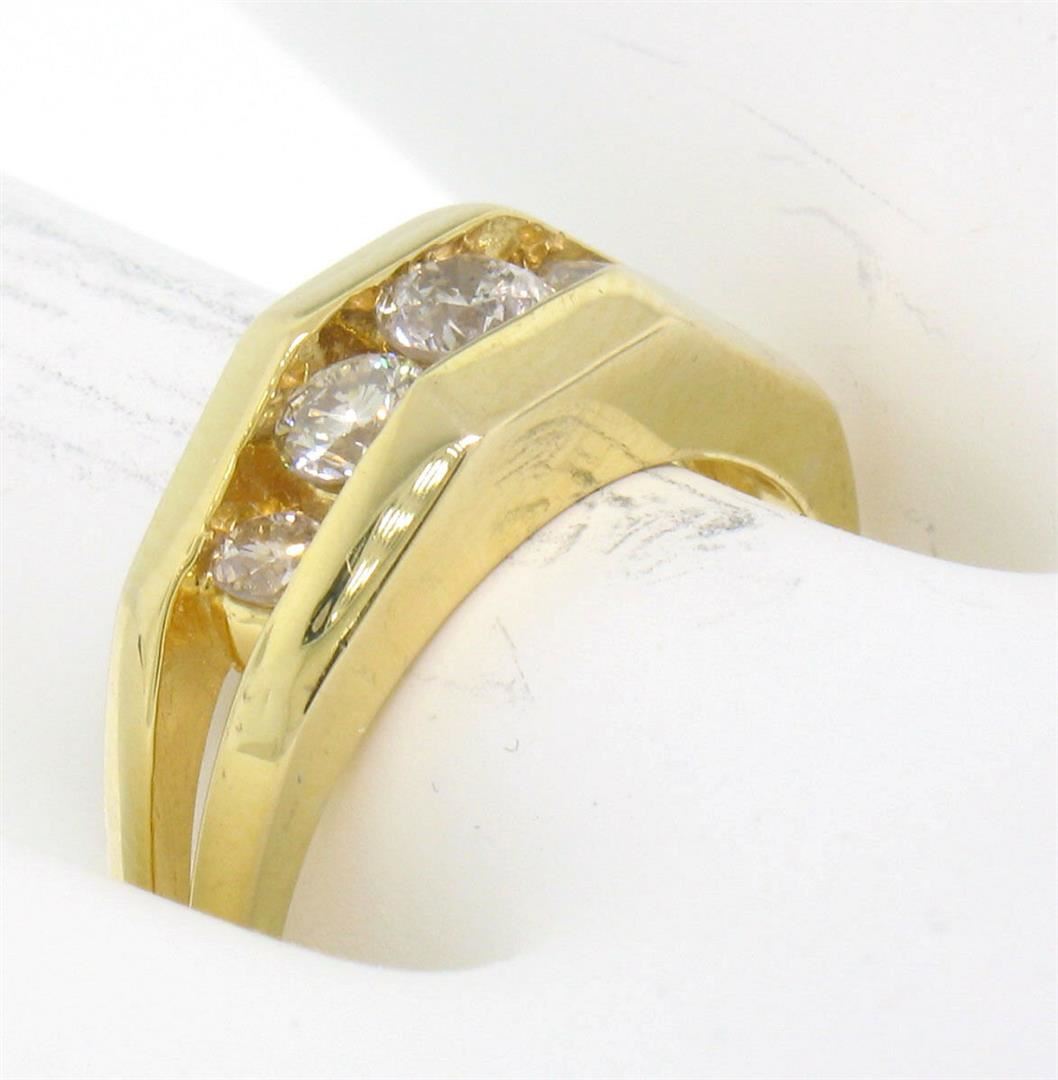 One 14k Yellow Gold 0.60ctw Channel Set Graduated Round Diamond Geometric Band Ring. Item Details: Material:  14K Solid Yellow Gold, Weight:  5.70 Grams , Stone:   (5) Natural Genuine Diamonds - Round Brilliant Cut - Channel Set - G/H Color - SI1 Clarity - 0.60ctw (approx.), Size: 7.0 , Width: 7.75mm, Condition: Like New