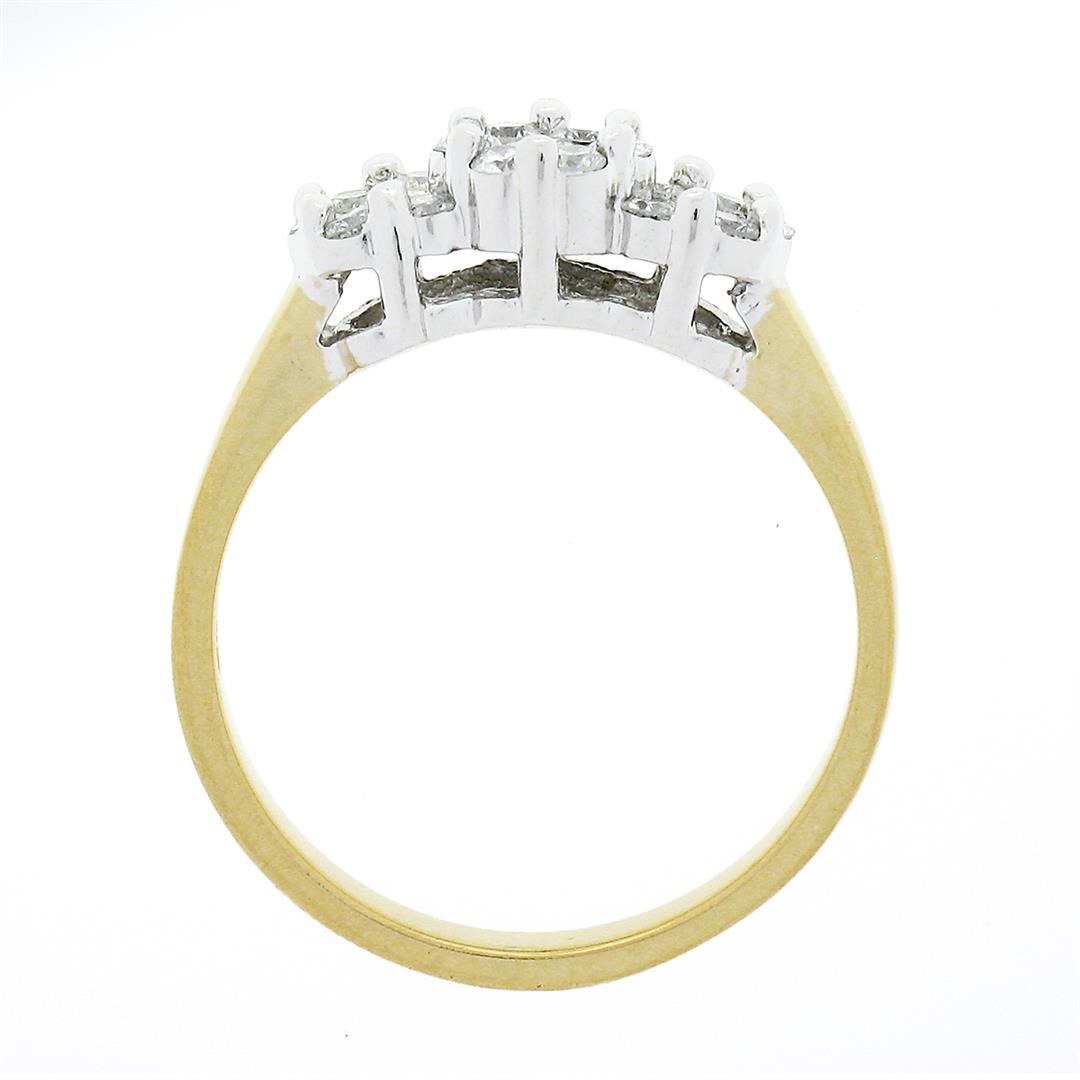 A solid yellow and white gold ring, with 19 roun brilliant cut natural diamonds (G/H - VS2/SI1 ; 0.55ctw). The ring is size 7.0, weighs a total of 3.54 grams, and measures 5.65mm wide.