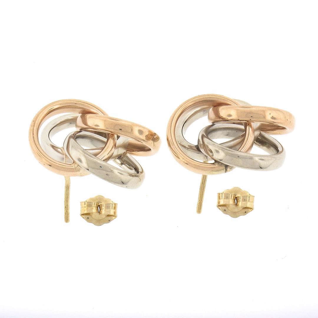 A solid 14k rosy yellow & white gold knot earrings. The earrings measure approximately 19.90x19.50mm and weigh a total of 4.25 grams.