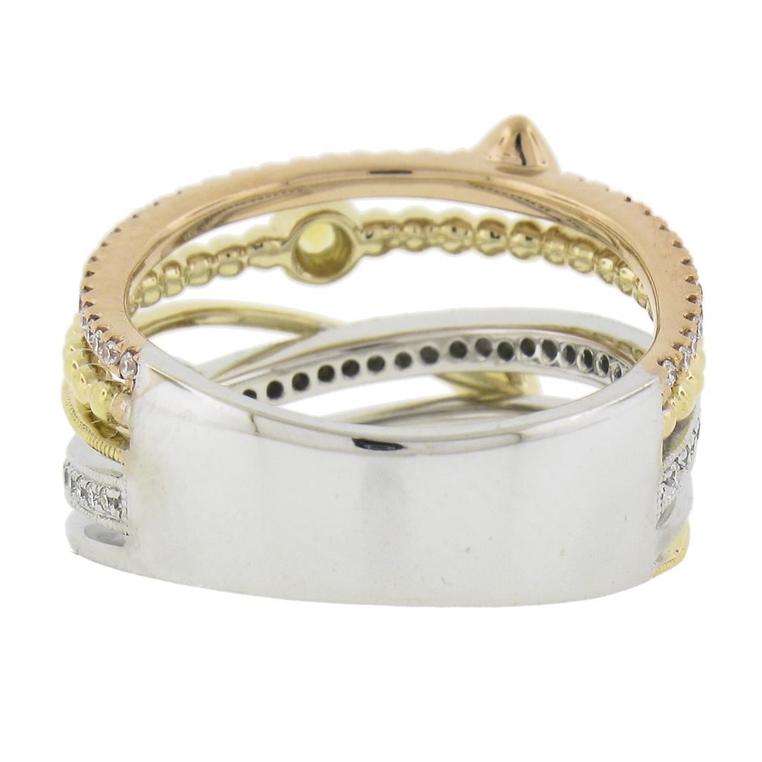 14k Tri Color Gold .60ct Multi Color Sapphire & Diamond Crossover Wide Band Ring