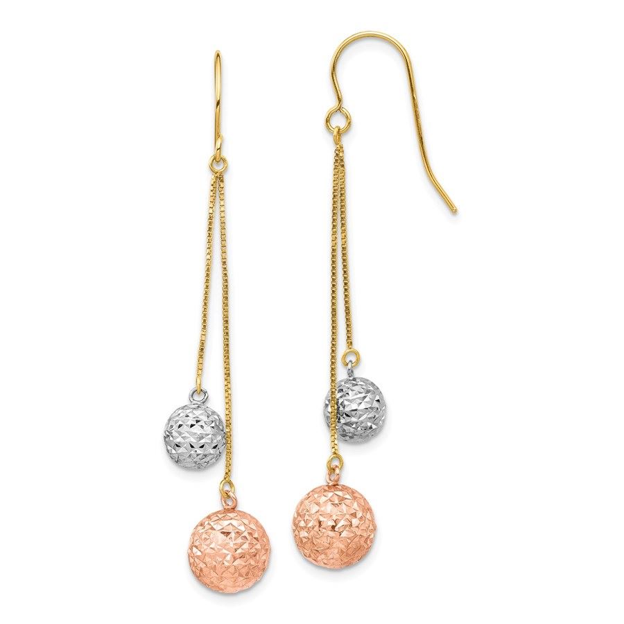 14k Tri-color Diamond-cut Beads Dangle Earrings