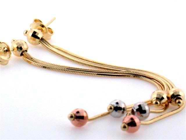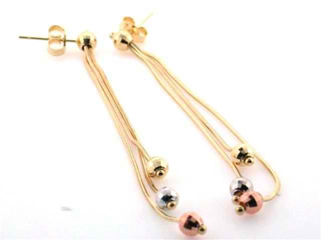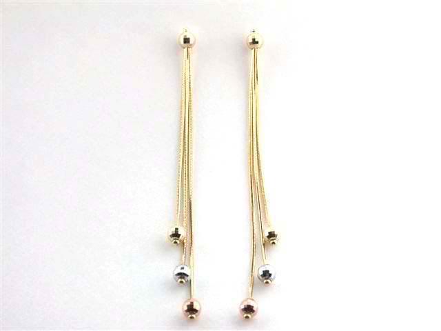 14k Tri-color Gold Dangling Earrings approximately 2.75 inches and weighs 4.4 grams