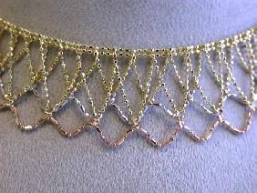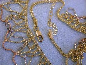 14k Tri-color Gold Necklace. Length is 16 inces long (with extension) and weighs 15.5 grams
