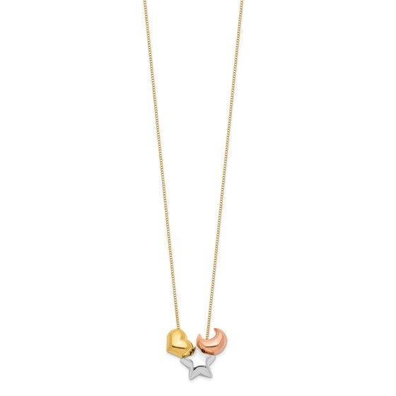 One piece 14k Tri-color Heart\, Star & Moon Necklace - 16 in.