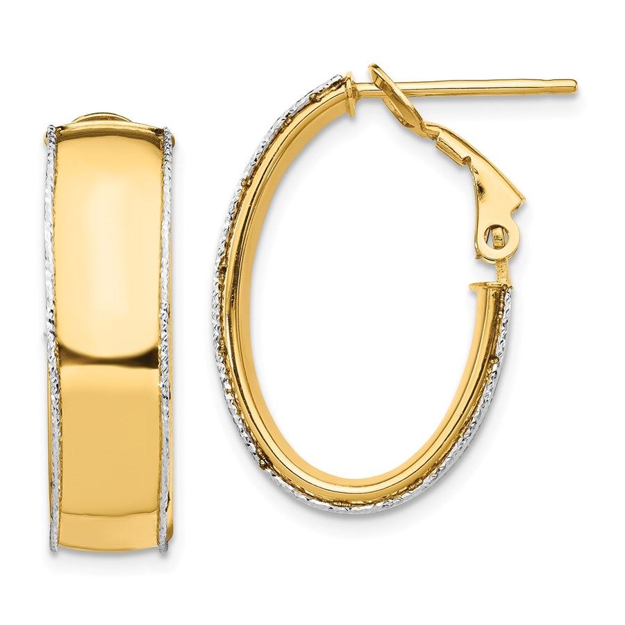 14k Two-Tone D/C wire Accent Oval Hoop Earring - 7.5 mm