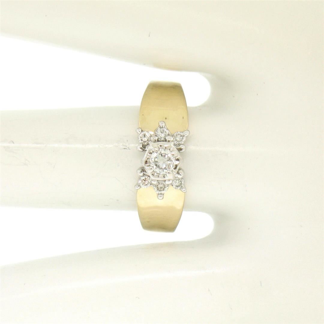 One 14k Two Tone Gold 0.30ctw Illusion Set Solitaire Diamond Engagement Ring Size 7. Item Details: Material: 14K Solid Yellow & White Gold, Weight: 4.3 Grams, Stone(s): (1) Natural Genuine Diamond - Round Brilliant Cut - Illusion Prong Set - G Color - SI1 Clarity - 0.20ct (approx.), (6) Natural Genuine Diamonds - Round Brilliant Cut - Prong Set - H Color - SI2 Clarity - 0.10ctw (approx.), Total Carat Weight: 0.30 (approx.), Ring Size: 7.0, Ring Width: 6.52mm, Ring Height: 7.05mm rise off the finger, Condition: Like New!