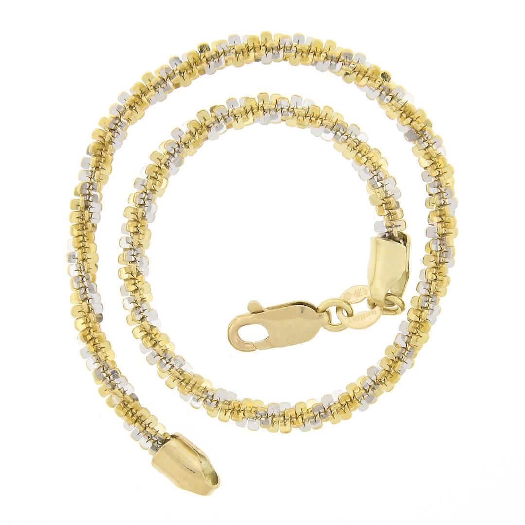A solid 14k yellow & white gold bracelet. It weighs a total of 6.05 grams, measures 3.1mm wide, and measures 7.5 inches in length.