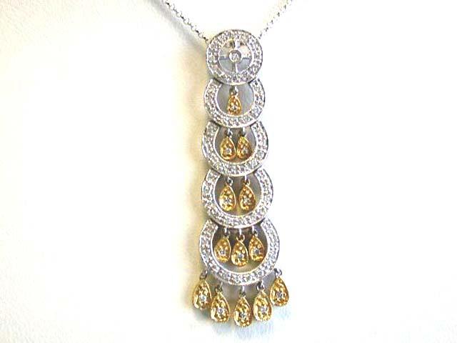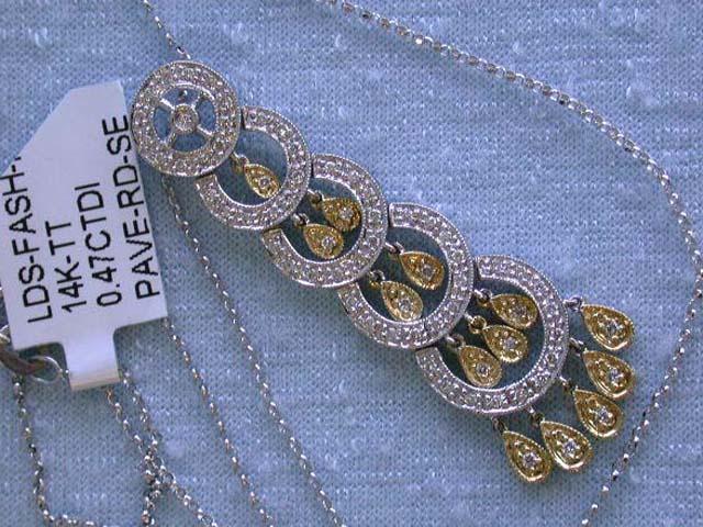 14k Two Toned Gold Pave Round Setting Pendant with 0.47 carat Diamonds. Pendant weighs 6.3 grams.