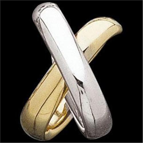 This lovely 14k Two Toned Gold Slide features a Yellow Gold half hoop and a White Gold half hoop in an 'X' design. It measures 16 x 10.75mm.