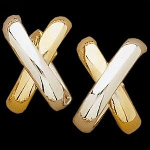 14k Two Toned Hoop Earrings. This beautiful Earring features a half Yellow Gold hoop and half White Gold hoop in an 'X' design.