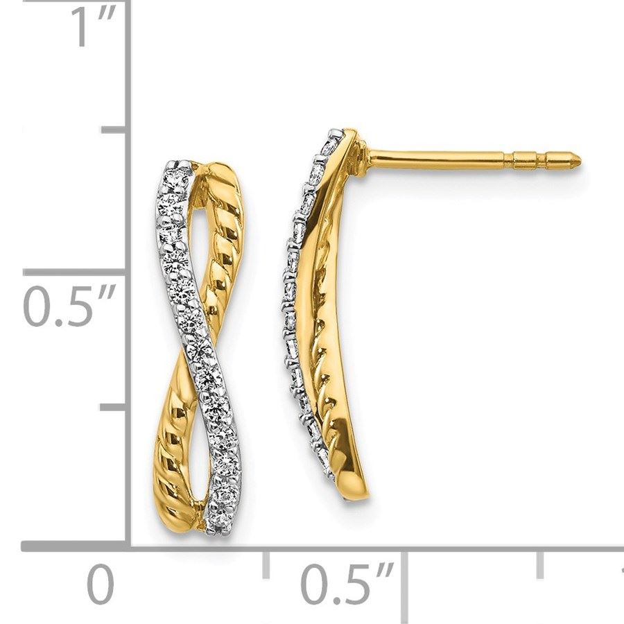14k Two-tone .208ct Diamond Fancy Twist Post Earrings - 17 mm