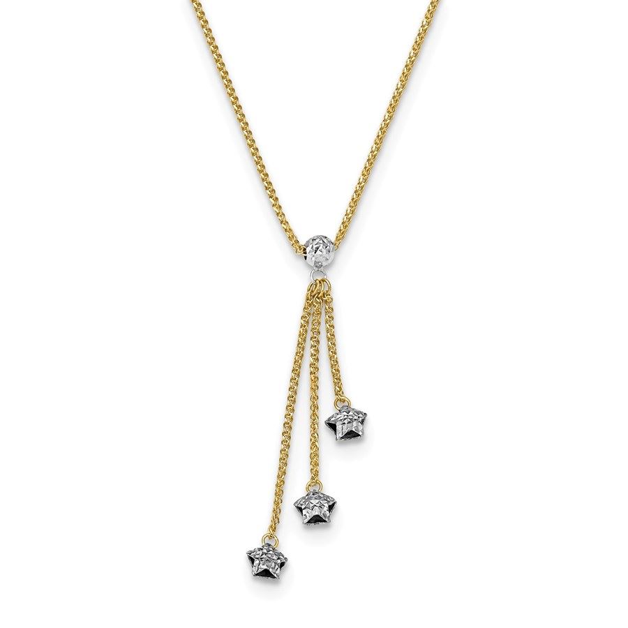 14k Two-tone Diamond-cut 3-Stars w/2in Ext.Necklace - 18 in.