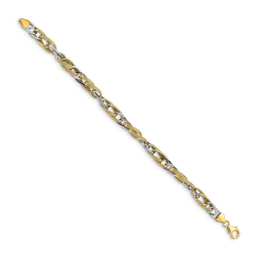 14k Two-tone Fancy Link Bracelet - 7.25 in.