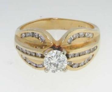 This is a Wonderful 14k Two-tone Gold Diamond Ring. The total ring's weight is 6.5 grams. The center diamond weight is 0.6 cts. approximately, H color VS clarity. Side diamonds 45 pts, H color, VS clarity. The size of the ring is 7. This is a beautiful ring!