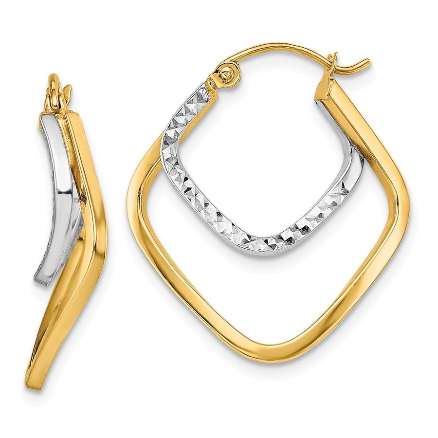 14k Two-tone Polished & Diamond-cut Hoop Earrings